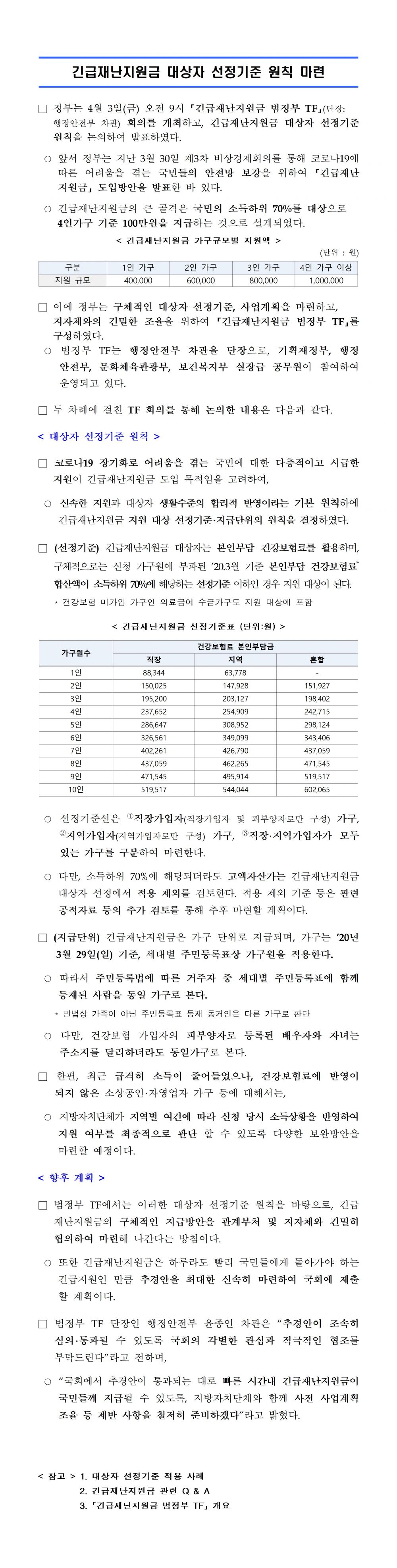 긴급재난지원금 대상자 선정기준 원칙 마련 2020-04-06 200403 (보도자료) 긴급재난지원금 대상자 선정기준 원칙 마련.hwp (179200K) 목록보기 이전글'21년 재난안전사업 예산 사전협의로 투자 효율성 높인다2020.04.10 다음글'코로나-19 관련 도전.한국' 참가 모집 공고2020.04.06