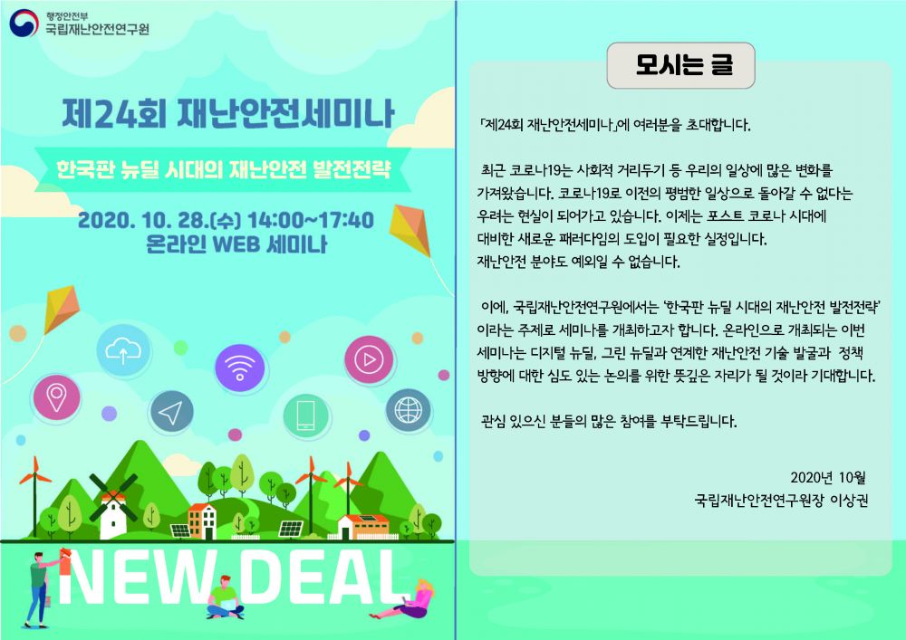 (국립재난안전연구원) 제24회 재난안전세미나 2020-10-26 ※자세한 사항은 첨부파일 확인 바랍니다. 붙임. 제24회 재난안전세미나 초청장.pdf (1671870K) 목록보기 이전글제언 - 재해(災害)를 부추기는 지자체2020.11.23 다음글제언 - 하인리히의 법칙2020.10.19
