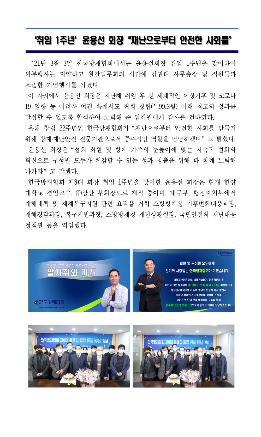 취임 1주년 윤용선 회장 "재난으로부터 안전한 사회를" 2021-03-05 목록보기 이전글경기도 건축위원회 위원 추천2021.03.08 다음글한국방재협회 정규직원 채용 공고(교육운영)2021.03.03