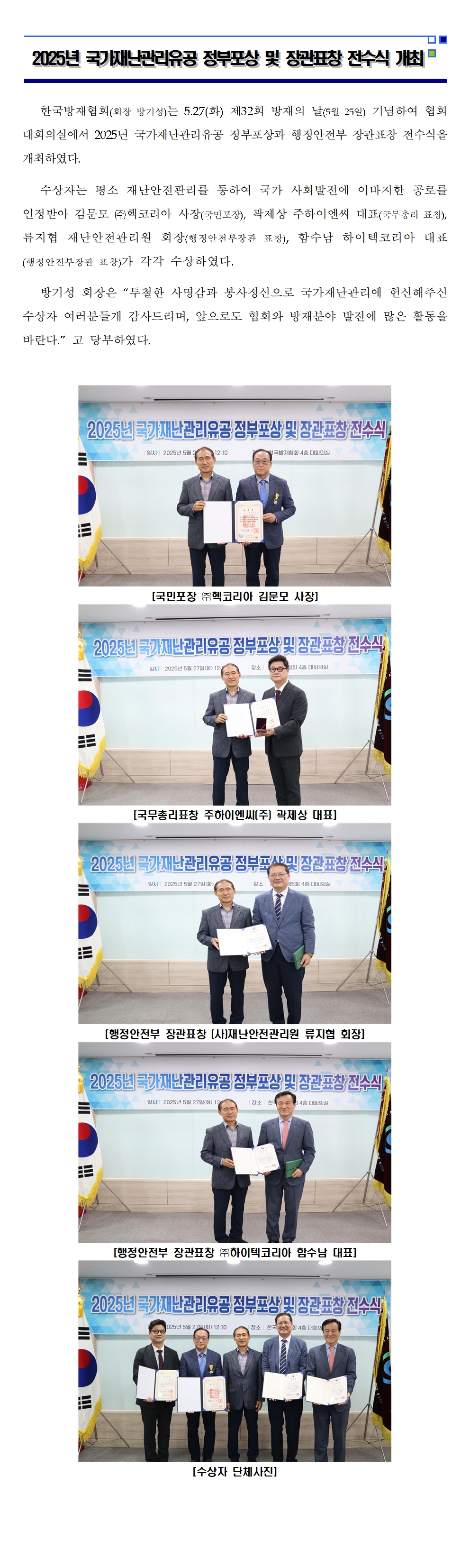 2025년 국가재난관리유공 정부포상 및 장관표창 전수식 개최 2025-05-28 목록보기 이전글[언론보도] 김천시, 재난안전분야 종사자교육 실시2025.06.02 다음글[언론보도] 포항시, 재해구호 전문인력 양성교육 실시2025.05.28