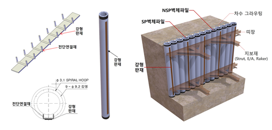 강판 매입형 PHC파일을 활용한 흙막이 벽체 시공기술 ㈜아이비이앤씨,코오롱글로벌㈜,디엘건설㈜,에이치엘디앤아이한라㈜ 2030-06-22