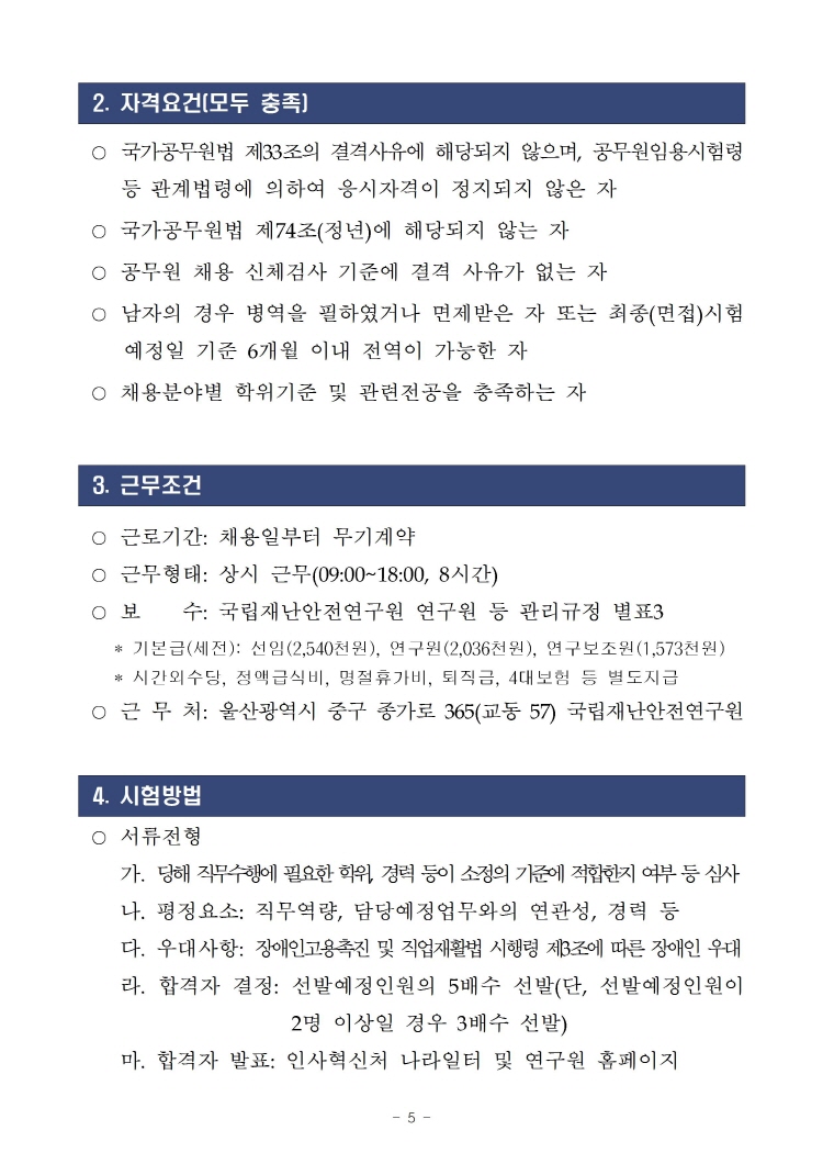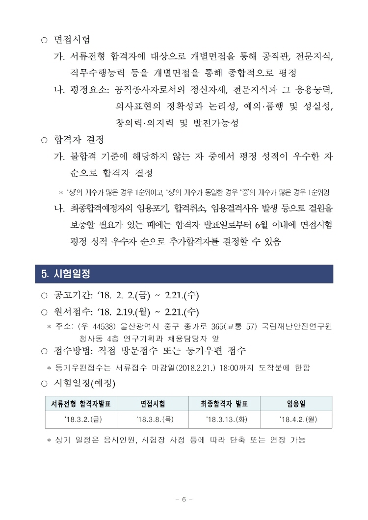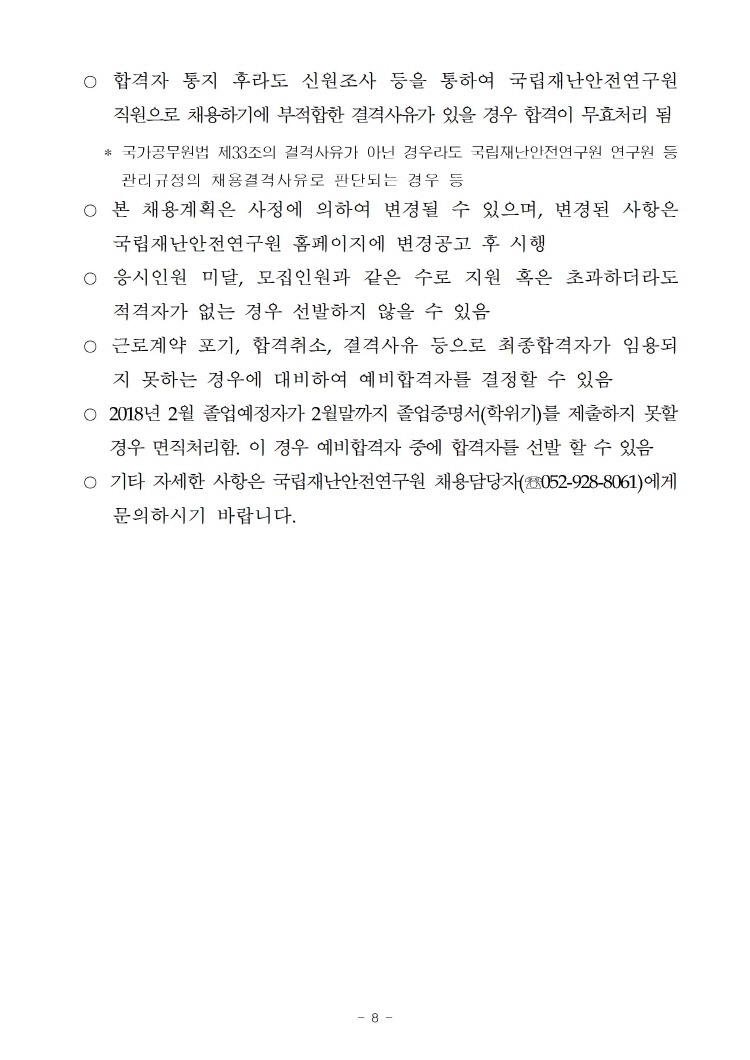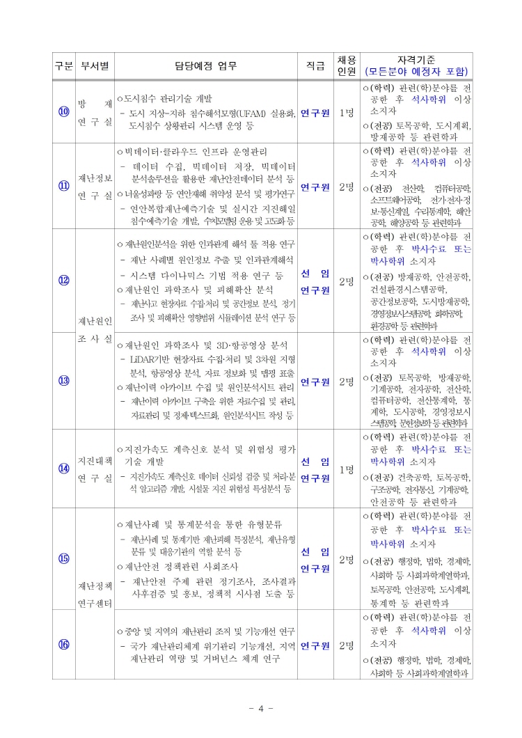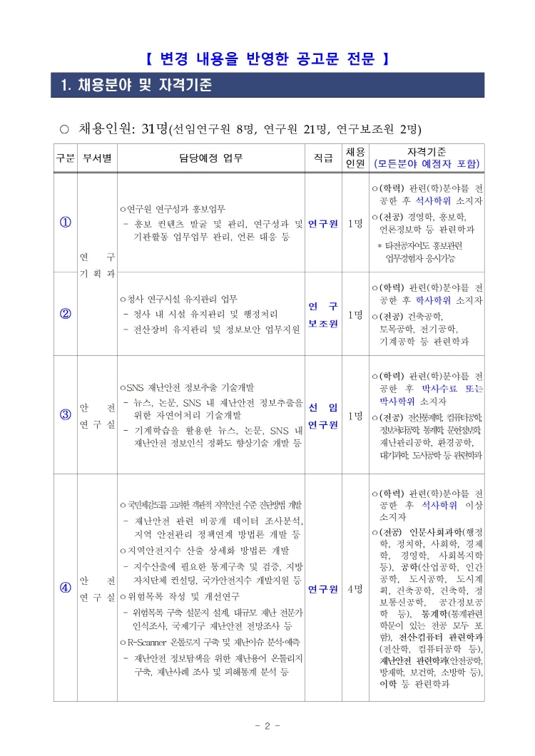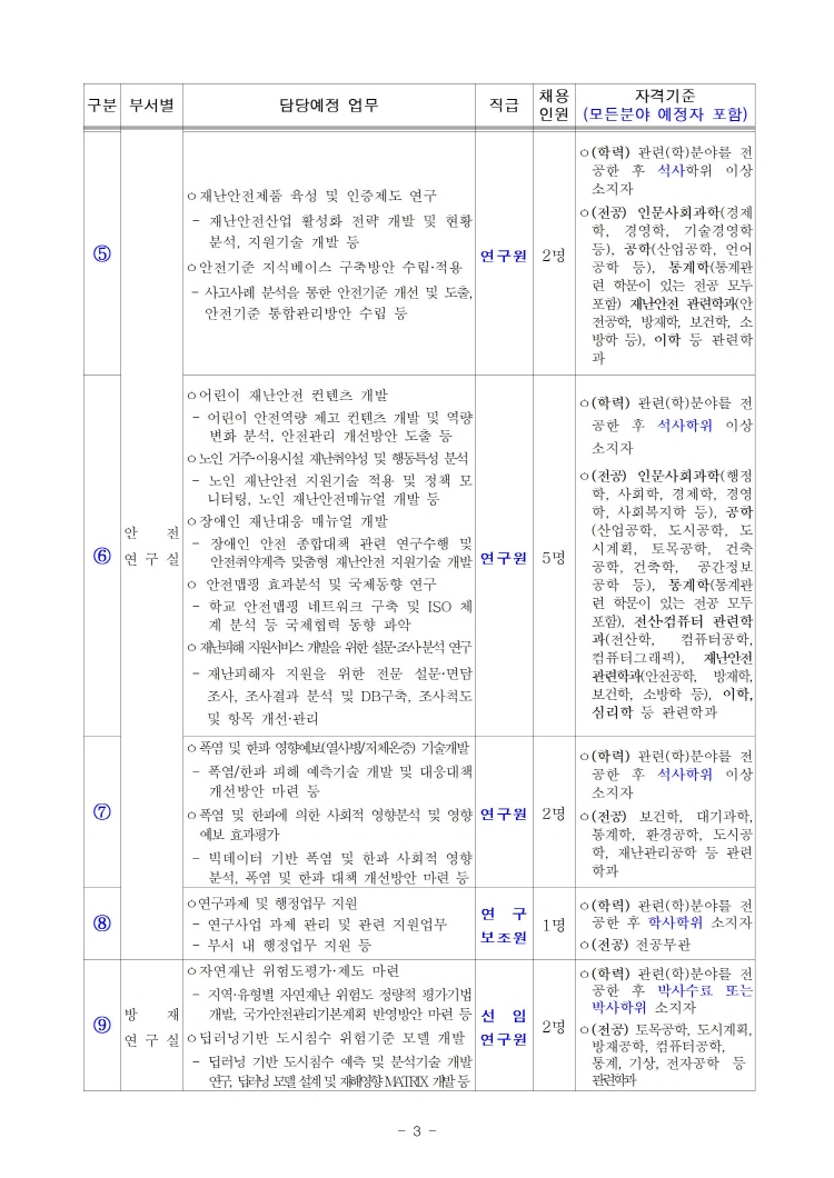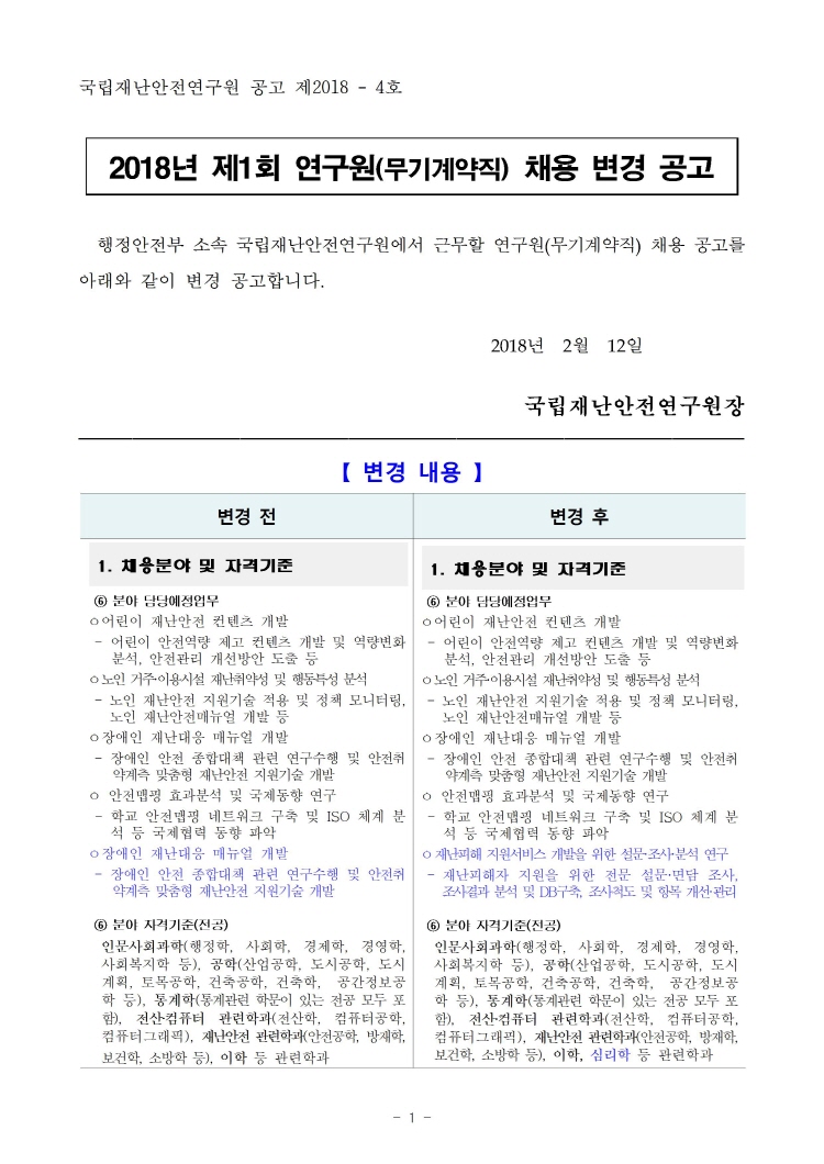 2018년 제1회 국립재난안전연구원 연구원(무기계약직) 채용 공고 2018-02-13 2018년 제1회 연구원 채용 변경 공고_최종.hwp (46592K) 목록보기 이전글“안전교육, 즐기면서 배워요”2018.02.22 다음글전남, 경북, 경남, 강원 일부 지역은 물 부족2018.02.12