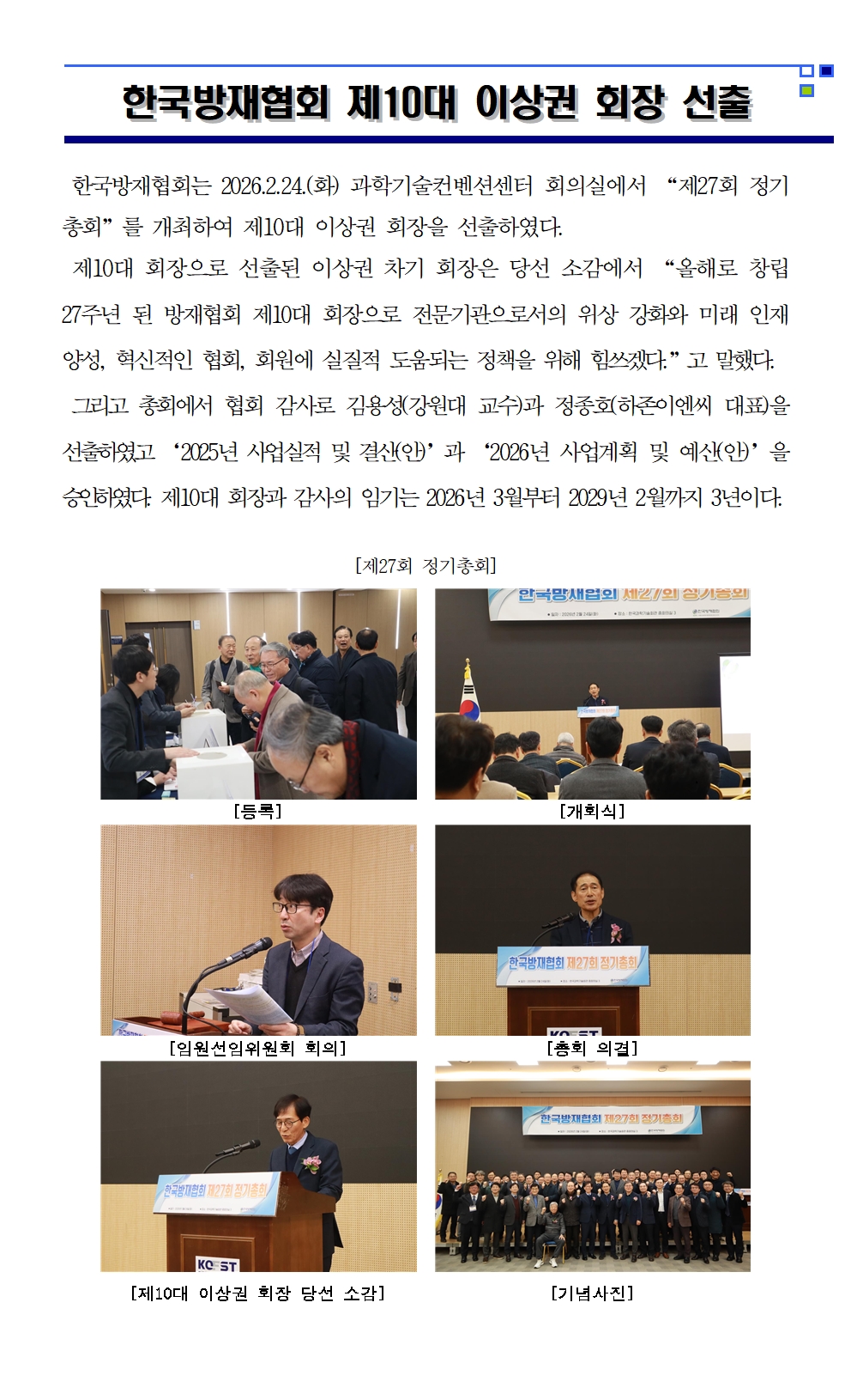 한국방재협회 제10대 이상권 회장 선출 2026-02-25 목록보기 이전글한국방재협회 제10대 이상권 회장 취임행사2026.03.04 다음글한국방재협회 제10대 회장 당선자 공고2026.02.24
