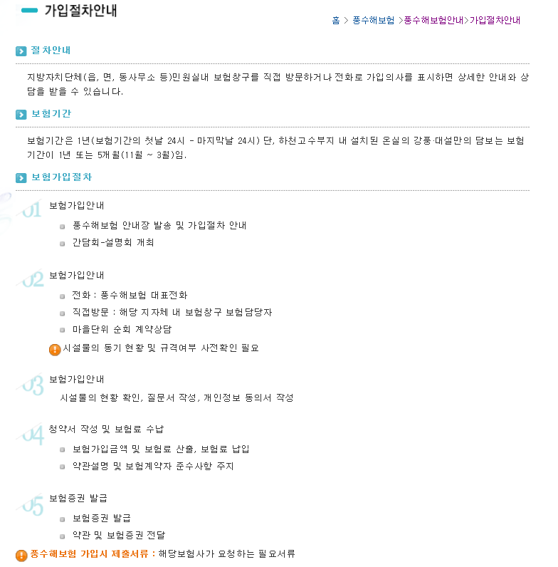 풍수해보험 알아보기 - (6) 가입절차안내 2014-07-16 목록보기 이전글풍수해보험 알아보기 - (7) 보험료 산출방법2014.07.21 다음글풍수해보험 알아보기 - (5) 납입방법2014.07.15
