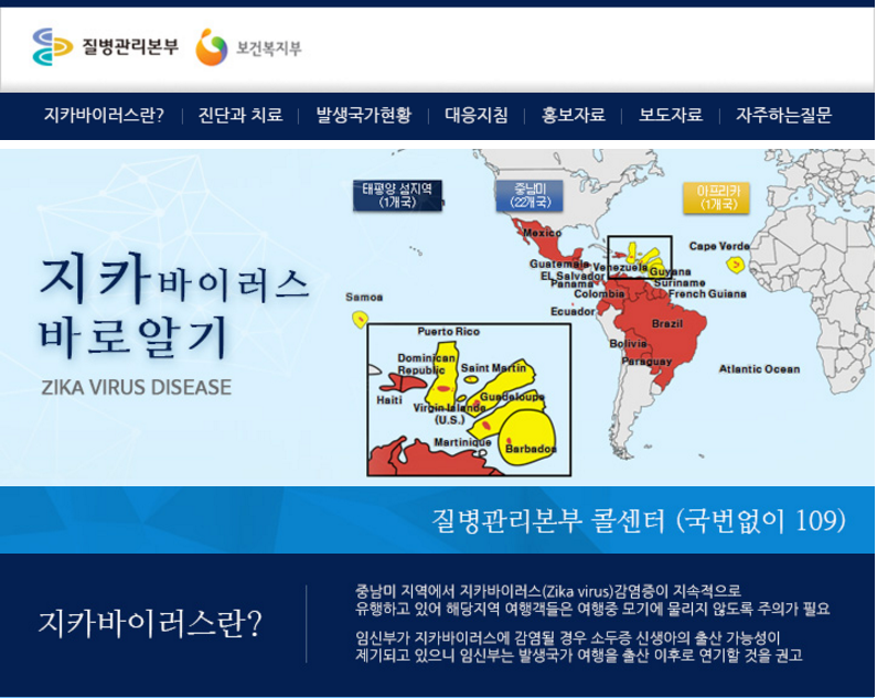 '지카바이러스' 바로알기(붙임. 지카바이러스 감염증 안내문) 2016-02-04 160129_지카바이러스 감염증 안내문.hwp (2522110K) 목록보기 이전글'지카바이러스' 일반 국민 행동 수칙2016.02.04 다음글<신간> 재난전문가 우승엽씨의 '대기근이 온다'2016.01.08