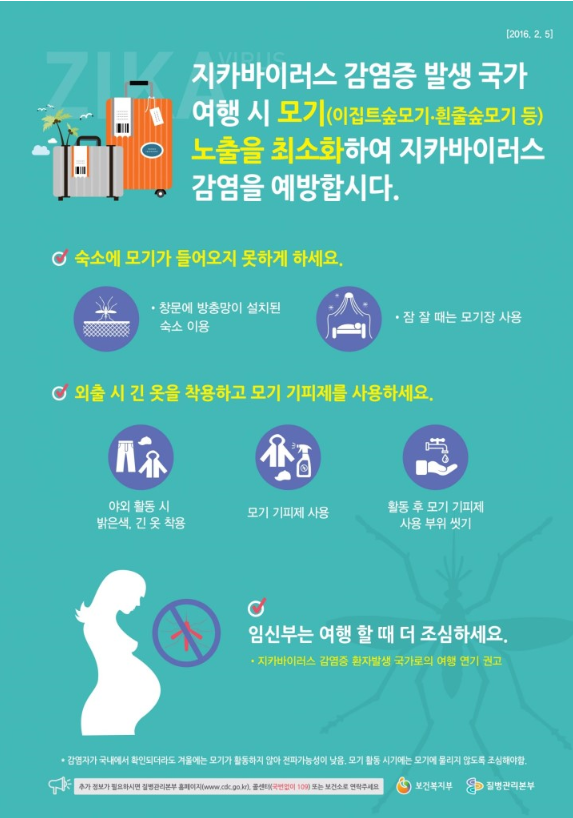 ● 최근 2개월 이내 지카바이러스 감염증 환자가 발생한 국가로의 여행은 출산 이후로 연기 권고