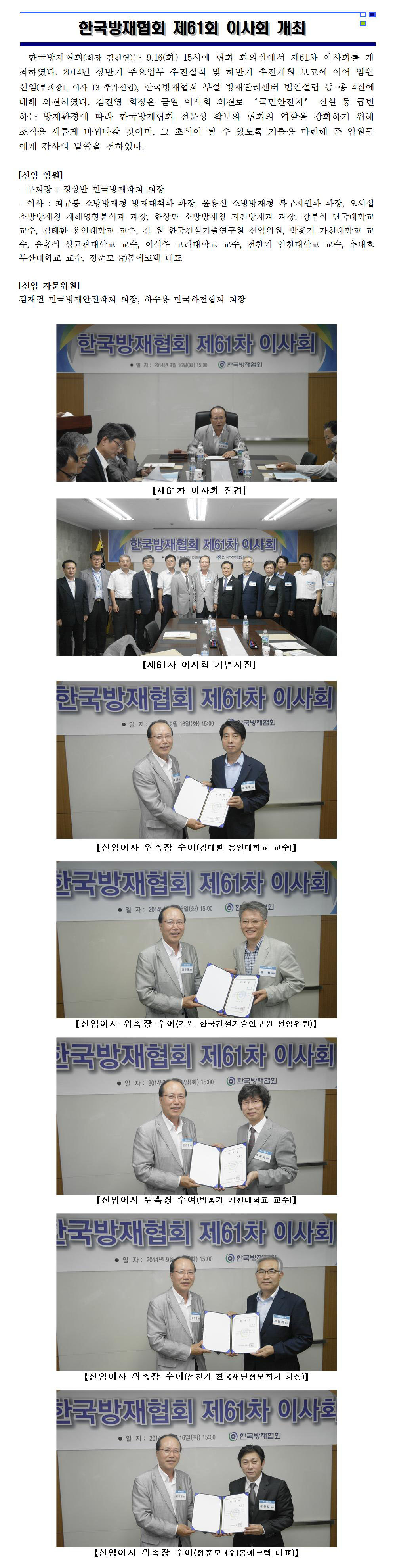 한국방재협회 제61회 이사회 개최 2014-09-17 목록보기 이전글[축결혼] 평생회원 경호엔지니어링 김기석 부사장 자녀 결혼식 알림2014.09.22 다음글2014년 제4회(61기) 방재분야특수전문교육 개강식2014.09.16