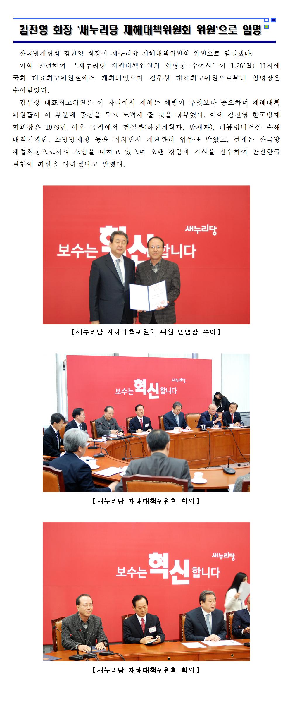 김진영 회장 '새누리당 재해대책위원회 위원'으로 임명 2015-01-26 목록보기 이전글[축결혼] 평생회원 (주)유신 박언주 부사장 자녀 결혼식 알림2015.01.27 다음글강남역 일대 배수개선 대책 포럼 개최2015.01.26