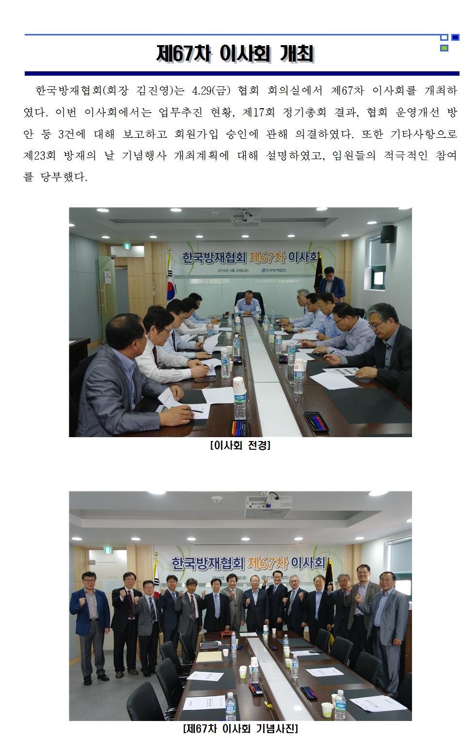 제67차 이사회 개최 2016-04-29 목록보기 이전글2016년 제1회(71기) 방재분야특수전문교육 수료2016.05.10 다음글김진영 회장, '2016 기후변화 대비 하천관리 워크숍' 축사2016.04.28