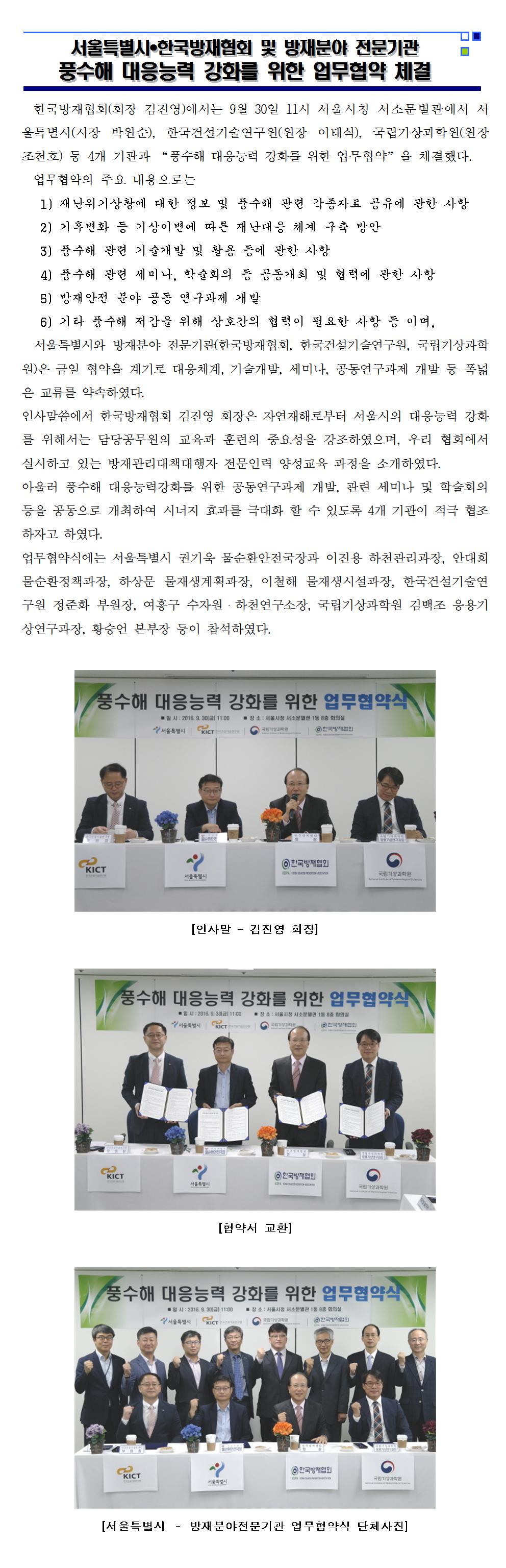서울특별시·한국방재협회 및 방재분야 전문기관 MOU 2016-09-30 목록보기 이전글2016년 경남재난안전네트워크 워크숍 특별강의2016.10.20 다음글[부고]김 철(호남대학교 교수) 모친상2016.09.26