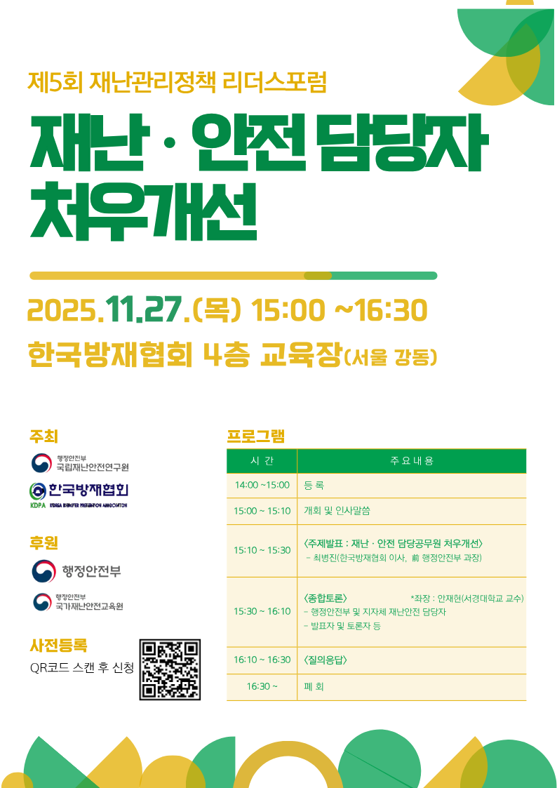 제5회 재난관리정책 리더스포럼 11월 27일 개최